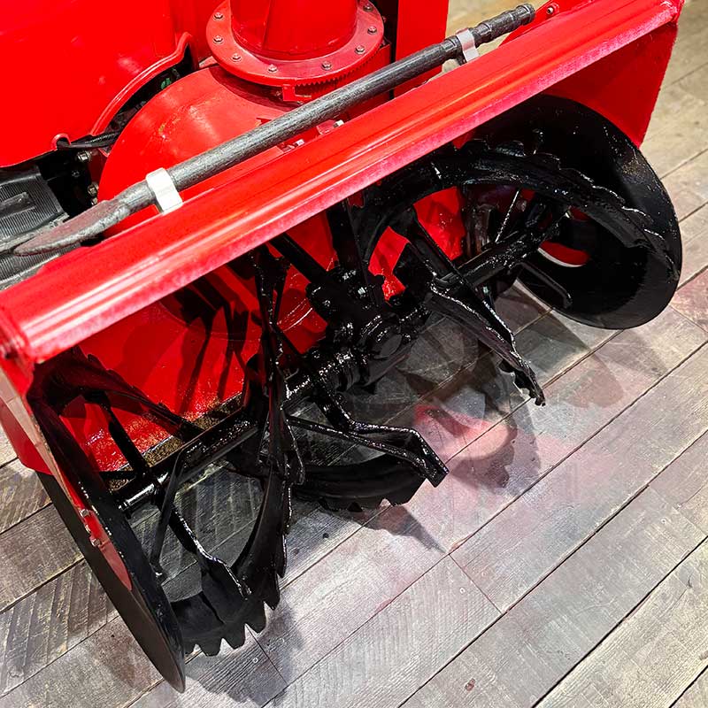点検済みですぐに届いてからお使いいただける除雪機です。保管状態がとてもよく機体全体的に艶々の状態です。雪接地部分の多いシューター・オーガ内は除雪の際の仕様傷があり何層にも塗装跡がありますが再度厚めに塗装いたしました。主要装備・機能